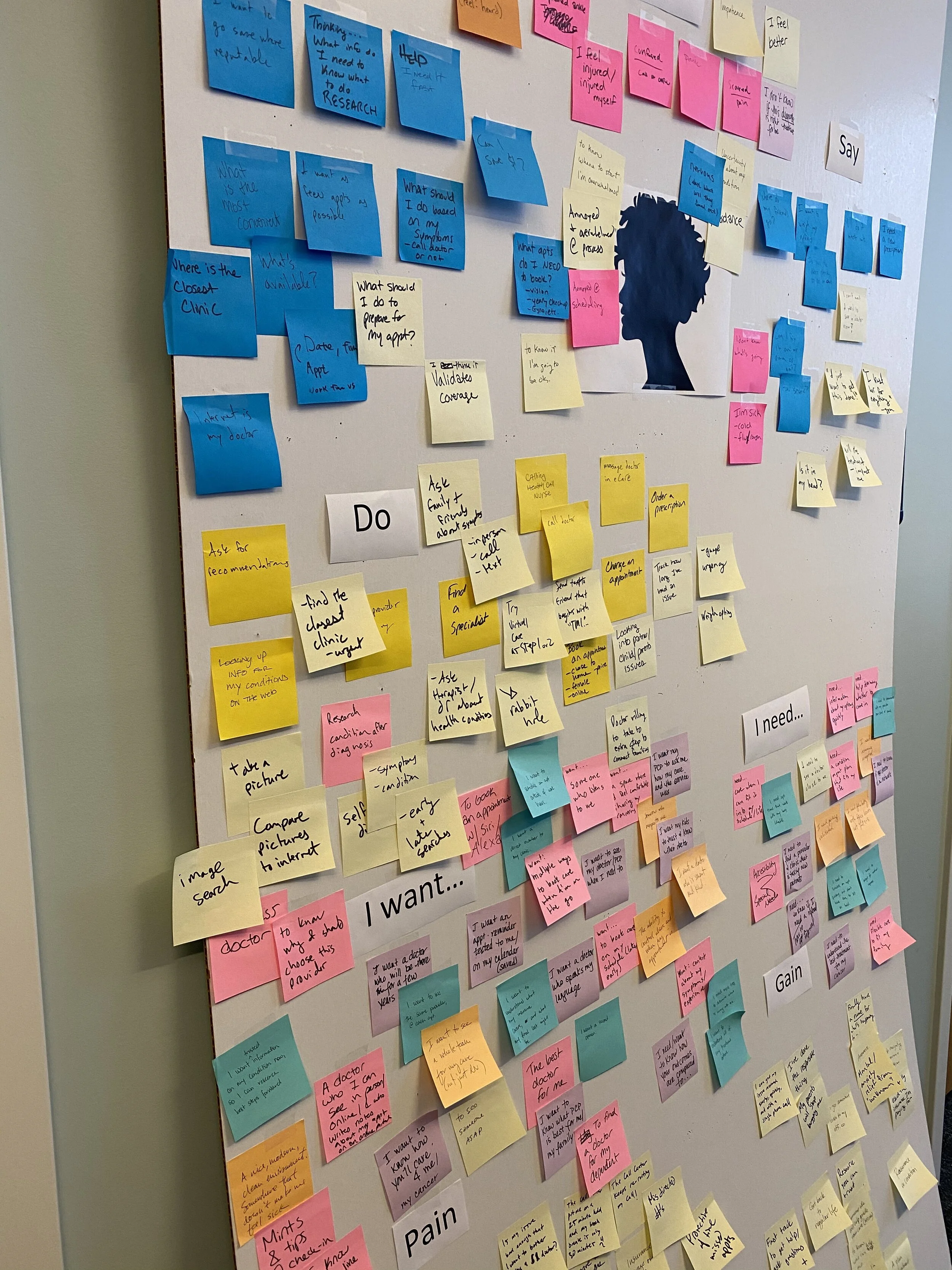 During this step, I seek to shed my own biases and situate myself within the needs, challenges, feelings, motivations and goals of the user. I spend as much time in this phase as the project allows, because time spent building empathy means I can advocate for the user throughout the rest of the cycle stages.