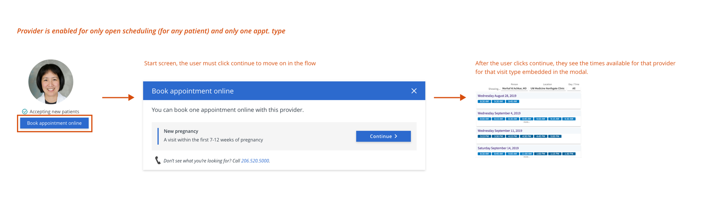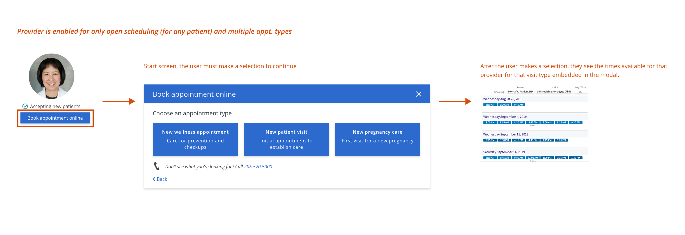 “At best the experience to link users from a provider or location page to a general “appointments page” was clunky, and at worst it was misleading, because users were not guaranteed to find their preferred doctor or location within the external online scheduling experience.”