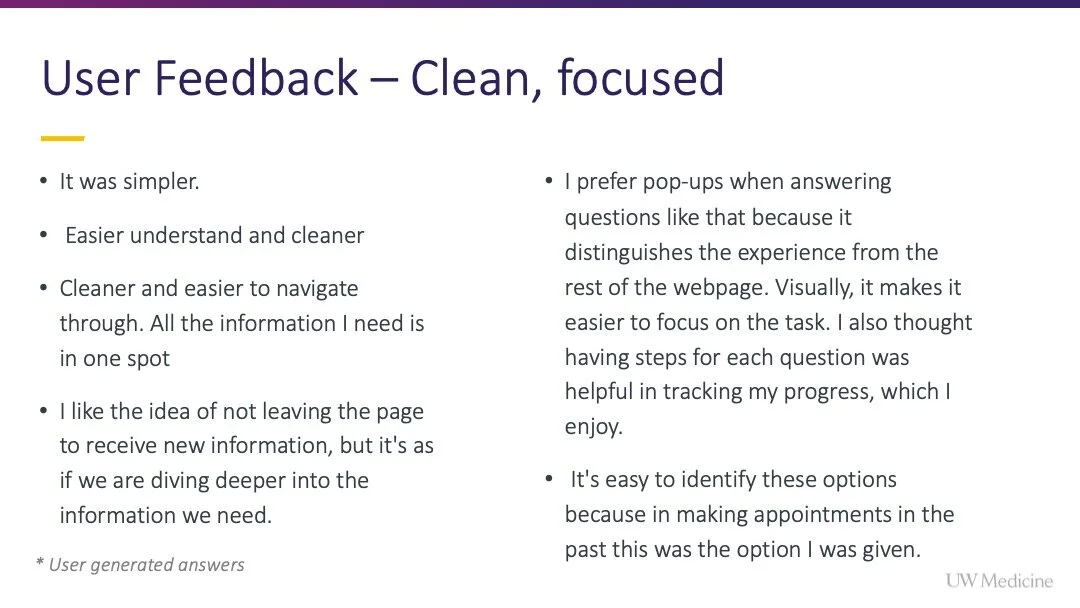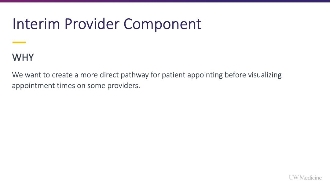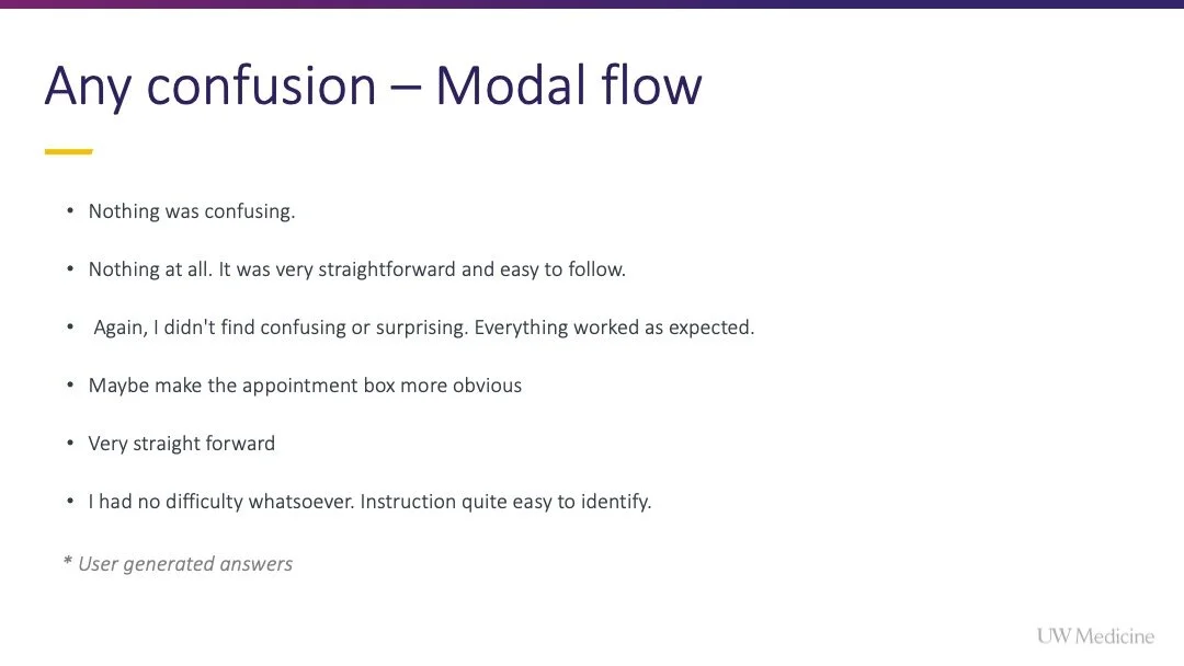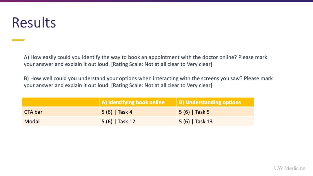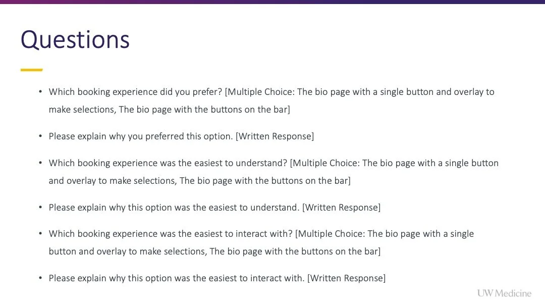 I championed this project, gained internal alignment to pursue it, and encouraged the team to fully integrate with the available scheduling widget (from Epic) rather than settling for options that were easier from an engineering perspective but lacked the same elegance and ease for users.
