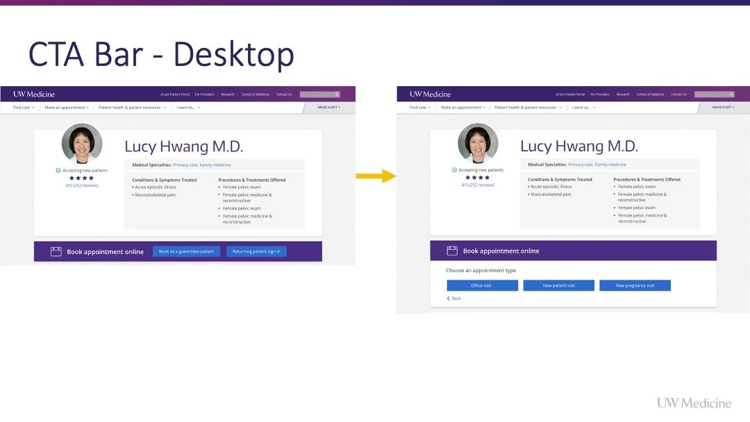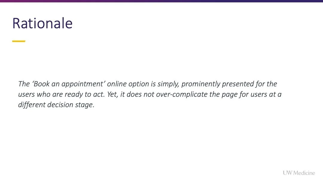 The previous path to appoint on the UW Medicine website was effortful for patients and failed to contextually situate appointing opportunities across the website.