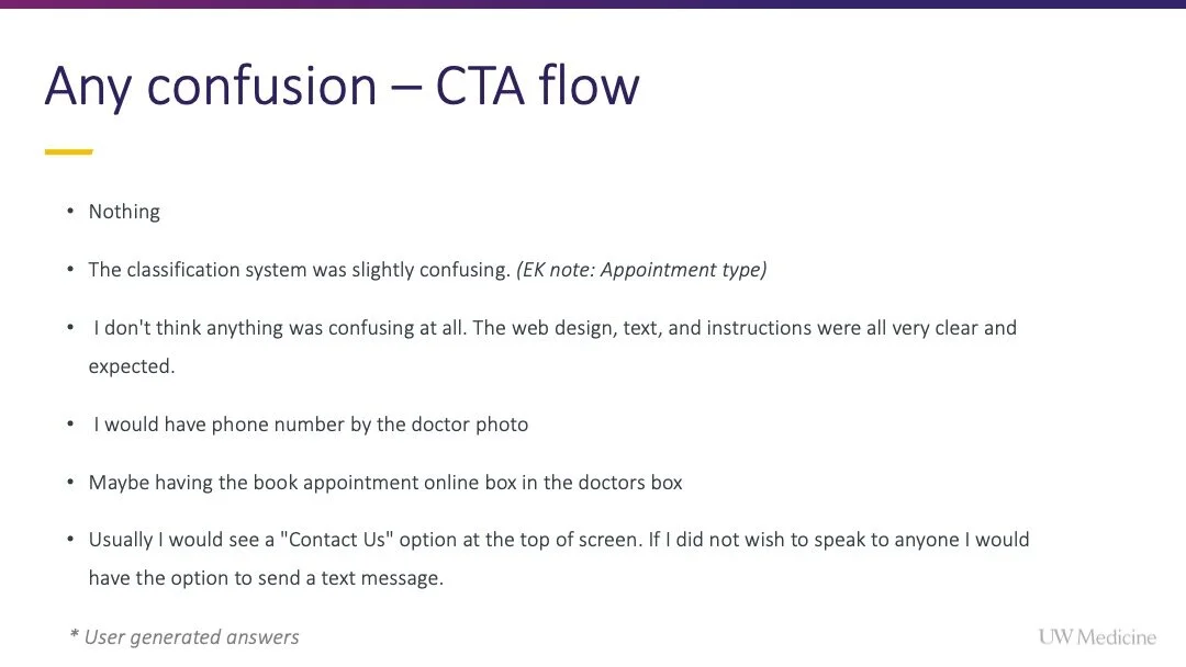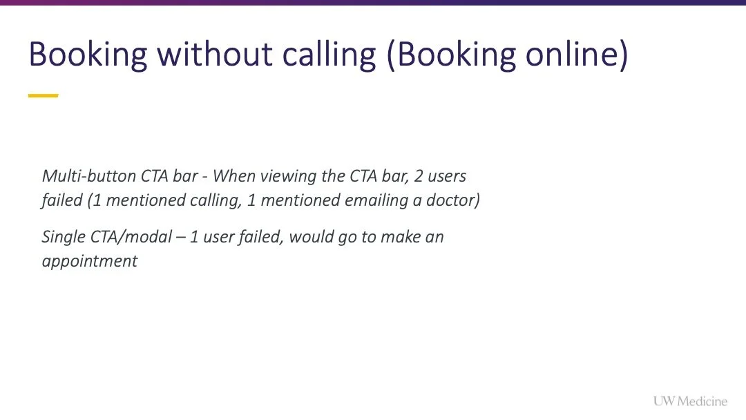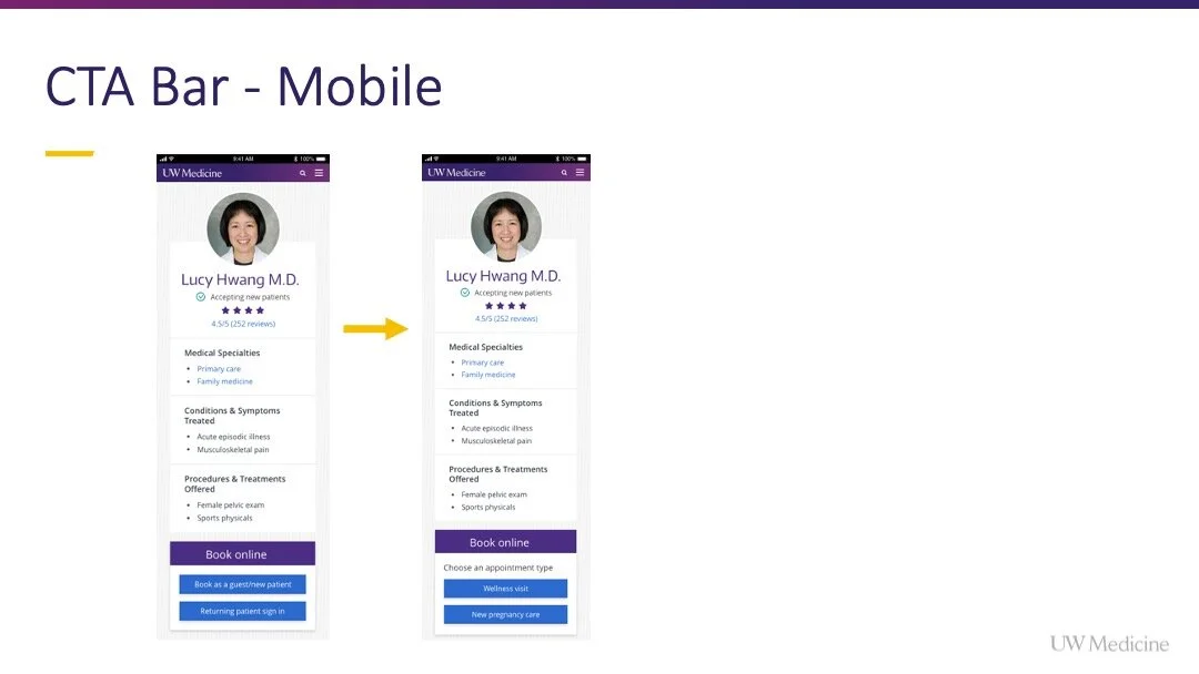 For example users who completed a Google search and landed on a provider bio, could not schedule an appointment online without leaving the page.
